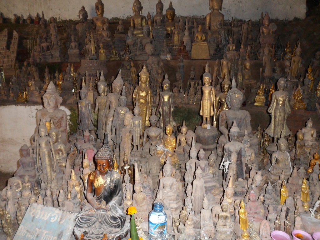 The first day, Luang Prabang to Pak Beng took around 10 hours (upstream) plus some stoppage time when we stopped at Pak Ou caves near where we went elephant riding. These caves are Buddhist caves with numerous Buddas in, and also showing the ridiculously high flood levels from 2006 and 1966.
