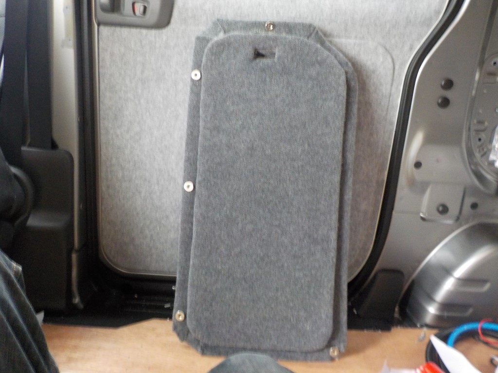 Finally, I made a “blind” out of darker carpet, 3 layers of silver bubble, and another layer of darker carpet. This goes over the window handle, and magnets hold in place. Seems to be nicely insulated and will hopefully stop condensation, and indeed is a full light barrier. This is version 1 so who knows if it’ll be any good. Its neat enough but not perfect, and whilst it stays in place, it may not when driving.