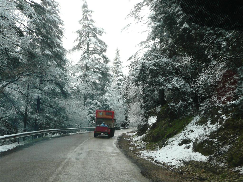 Overnight the temperatures plummeted and the rain turned to snow which closed the one and only road/pass to our next destination.  In the morning the pass was open to all except lorries, so we ventured over through a snowy landscape.  The pass was fairly clear and gritted so no real problem.  The landscape changed fairly quickly from lush green fields, to snow, then to rocky and arid desert landscape – quite bizarre, and then the faces and people seemed to change the other side of the mountains.  A top up of diesel cost a staggering 360 dirham, which when converted to UK price is 56p a litre.  56p!!!!!  Think I’m going to take a trailer back loaded with drums.